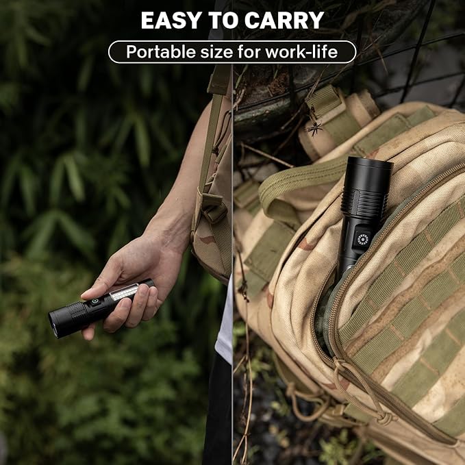 - Premium Materials - Linternas led recargables de alta potencia The housing is made of aircraft-grade aluminum alloy with excellent hardness, abrasion resistance, drop resistance, waterproof, and anti-slip properties.