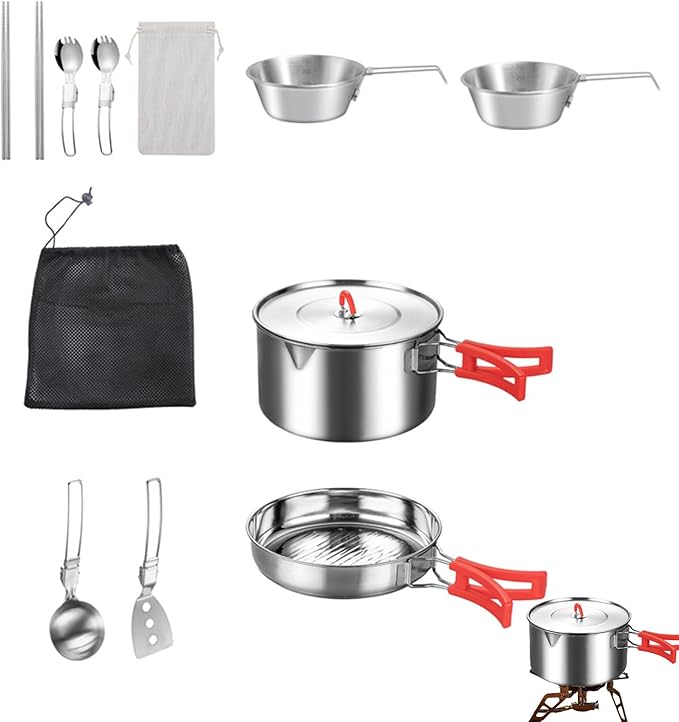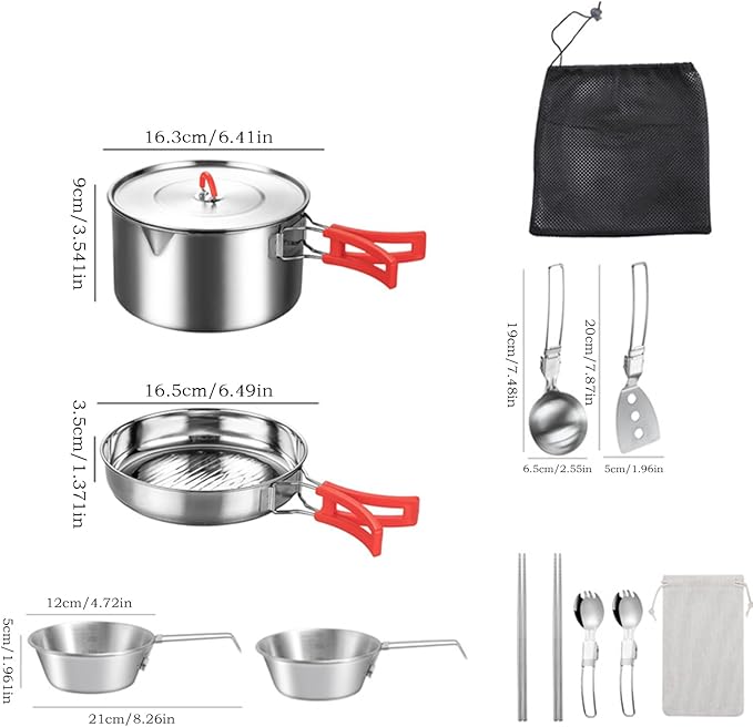 - Portable Solution: This camping cooking set features a lightweight and portable build that ensures effortless transport during hiking or backpacking trips, offering space-saving storage to simplify packing and enhance convenience for outdoor adventures