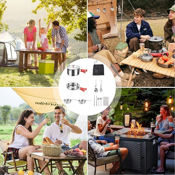 Camping Cooking Set | Stainless Steel Survival Gear with Utensil - Camping Cookware Kit with Carrying Bag,for Kitchen Backyard Picnic Hiking Fishing Backpacking Travel