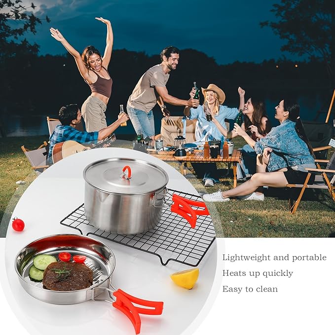 - Tough Stainless Steel: This camping cookware features heat-resistant stainless steel that withstands high temperatures, ensuring durability and safety while preparing meals in rugged outdoor environments