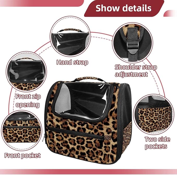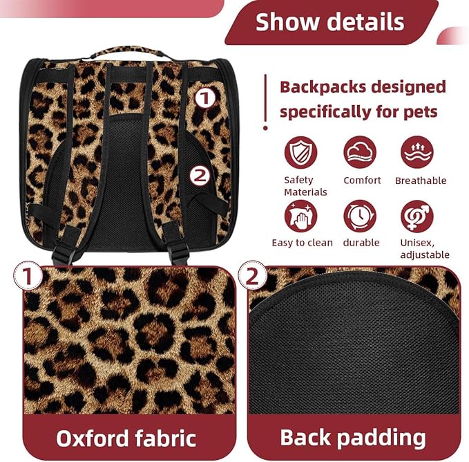 Dog Carrier Backpack for Small Pets - Cat & Dog Backpack for Hiking, Camping or Travel, Brown Leopard Print (1)