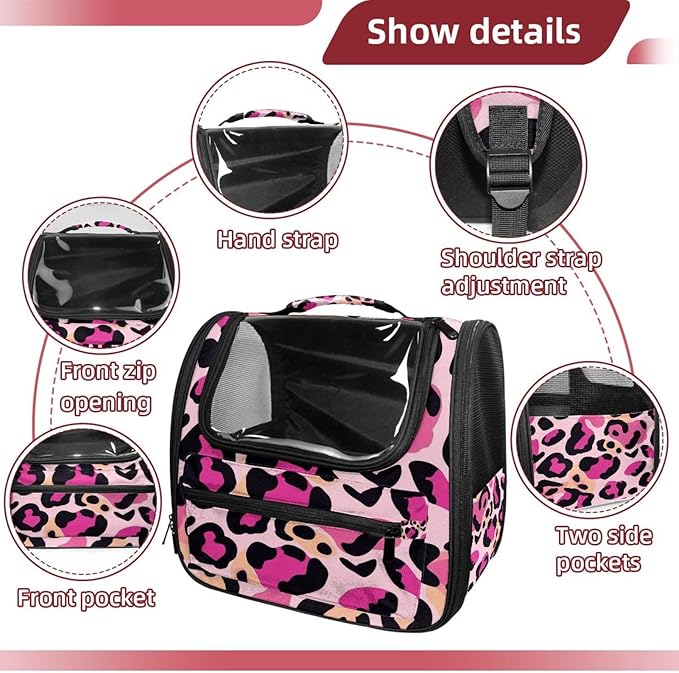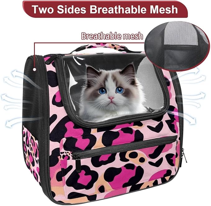 Pink Leopard Print (1) Cat Backpack Carrier, Pet Backpack for Dog Cat Puppy Kitty, Travel Carrier for Hiking Walking Outdoor Use